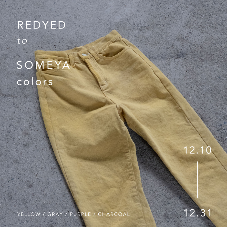通常、ソメヤスズキの定番色チャコールのみで受付をしている私物の染め直しを、特別に23/24 カラーで承ります。年内だけの期間限定です!